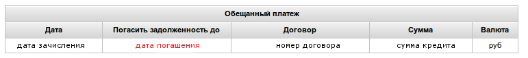 Рис. 4. Информация об обещанном платеже.